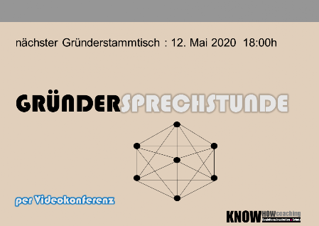 Eine Gründersprechstunde fand am Dienstag 12. Mai 2020 statt.